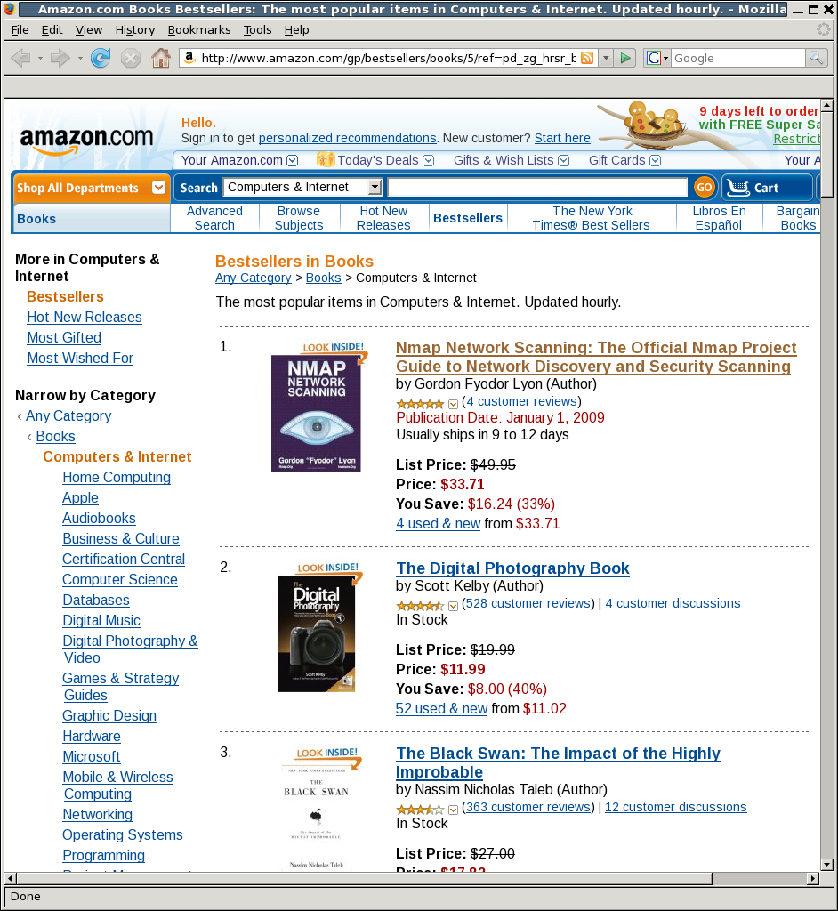 December 8, 2008: An excellent Slashdot review causes NNS to rocket into Amazon's top 10 computer books.