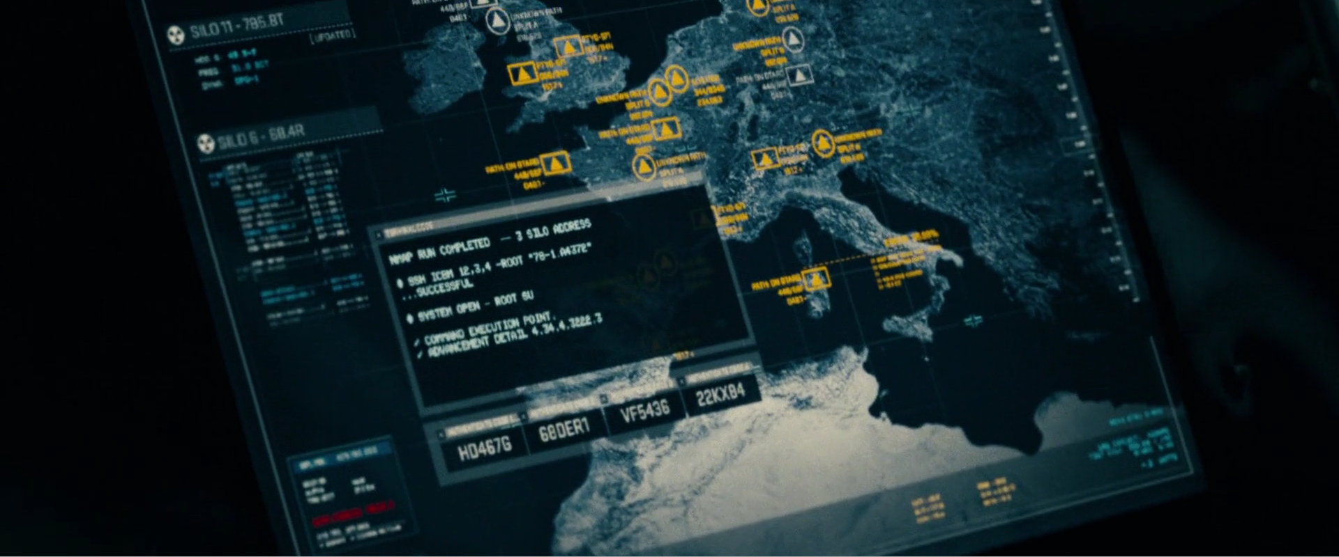 Nmap is used to launch nuclear weapons in the 2013 action film G.I. Joe: Retaliation (Wikipedia, IMDB, Amazon). While their syntax is a little screwy, they seem to scan a missile silo with Nmap, ssh to each located ICBM, su to root and then execute commands to arm and launch it. Here are screen shots followed by the movie trailer: