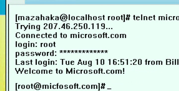 Nmap (and then telnet) are used by a teenage hacker (Gena) to deface Microsoft.Com in the 2006 Russian film Khottabych (Wikipedia, IMDB). Microsoft and the US authorities are understandably upset by the attack, so they send the attractive female hacker Annie to flush him out. The movie also features an epic battle between powerful genies (the kind which come in a bottle) fighting for dominion over Earth. Thanks to Paul Shatov for notifying us and sending the screenshots! I bought this DVD from Amazon, but it is region 5 and offers no English dubbing or subtitles. I had to use this subtitle file. Wikipedia claims that a region 1 English DVD was released.