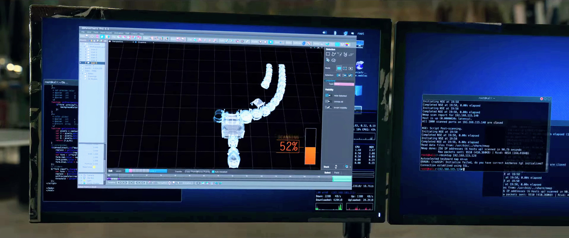 In this screen (full version), Nmap is shown in the two screens on the right while they are 3D-scanning their target necklace on the left: