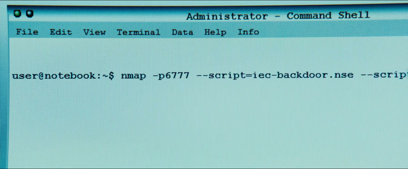 Who Am I—No System is Safe (Wikipedia, IMDB, Amazon) is a 2014 German cyber-thriller about dueling hacker groups (patterned after Anonymous) vying to commit the most audacious system compromises and pranks. During an initiation scene 13:40 into the movie, the protagonist Benjamin proves his skills by compromising the local power company and causing a brief blackout. He does so by running an Nmap Scripting Engine (NSE) script that he has presumably written. The script is named iec-backdoor.nse, referencing the International Electrotechnical Commission (IEC) standards which control utility power grid equipment. This bit of realism is a nice touch! Screen shots: